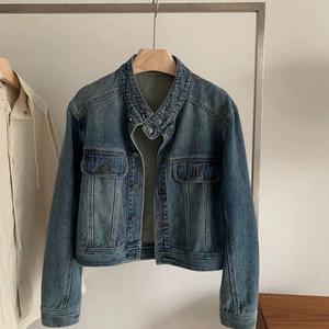 2025年春季新款港味复古做旧短款牛仔外套女宽松显瘦立领夹克上衣