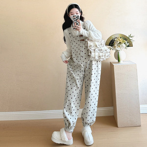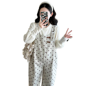 孕妇装秋冬季宽松显瘦百搭束脚波点背带裤针织打底上衣潮妈两件套