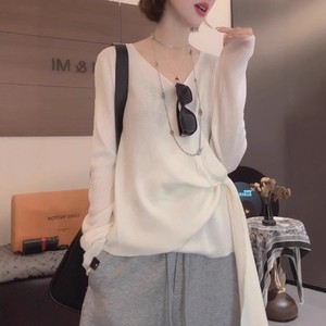 法式V领针织长袖衫女初秋新款大码女装胖MM遮肉显瘦宽松上衣潮