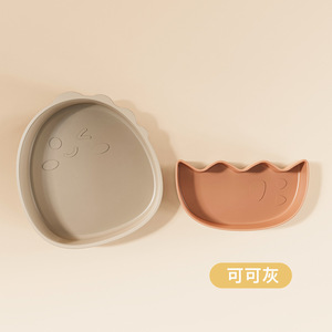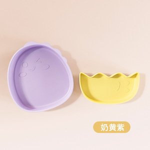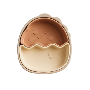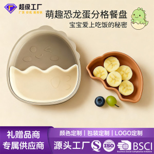 跨境新款儿童恐龙蛋硅胶餐盘宝宝萌趣分格餐盘婴幼儿自主进食餐盘