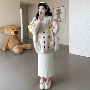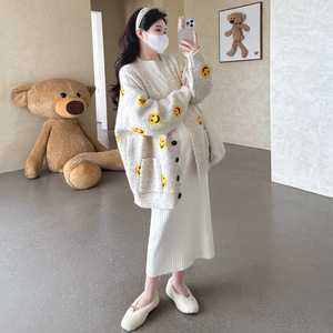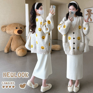 2025冬季新款时尚羊绒宽松保暖外套+中长款打底裙显瘦孕妇套装潮