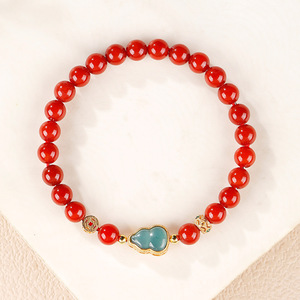南红玛瑙手串女本命年平安福禄蓝水翡翠葫芦手链新中式送女友饰品