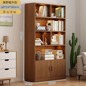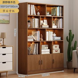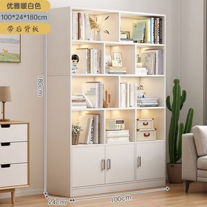 分层书架置物架落地收纳架客厅靠墙储物柜子卧室家用墙边带门书柜