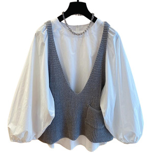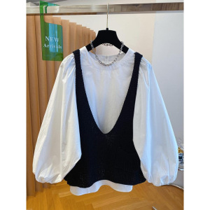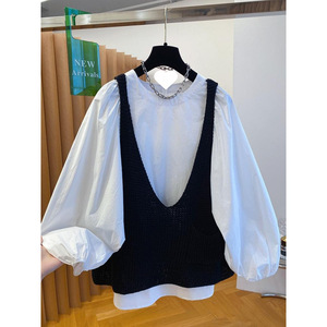 减龄针织马甲衬衫两件套上衣女2025年新款宽松叠穿早秋氛围感穿搭