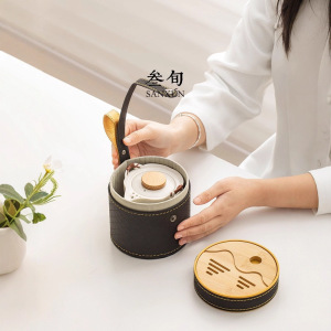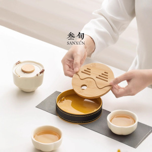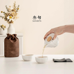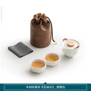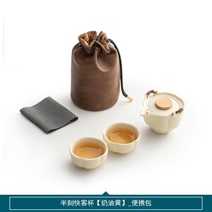 半刻快客杯一壶二杯便携式旅行茶具套装户外奶油色陶瓷泡茶壶