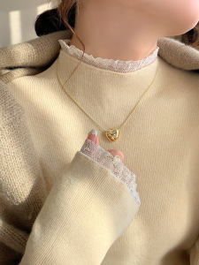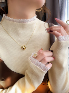 灰色蕾丝边打底衫女早秋季内搭2025新款设计感黑色上衣半高领毛衣