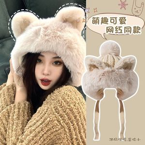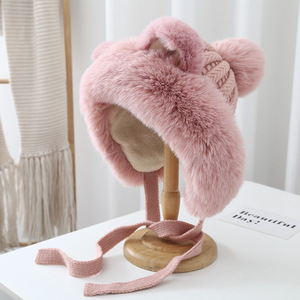 韩版甜美可爱狐狸耳朵毛绒针织雷锋帽子女秋冬保暖护耳毛线冷帽潮