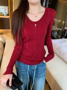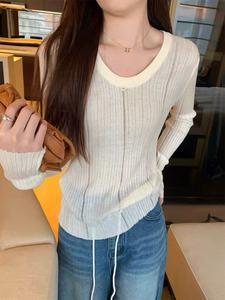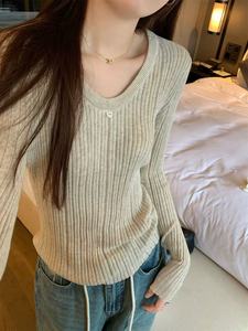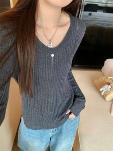 别致气质修身打底衫女早秋纯欲低领毛衣高级感内搭长袖针织衫上衣