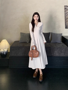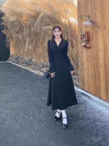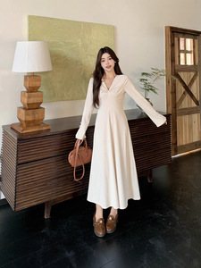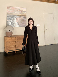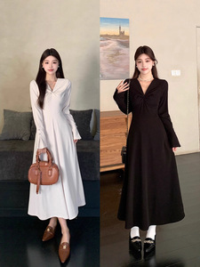 大码女装气质设计感女秋季新款显瘦v领气质收腰长款连衣裙