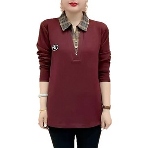 一件代发直播爆款2025春秋季新款妈妈装假两件翻领长袖T恤女上衣