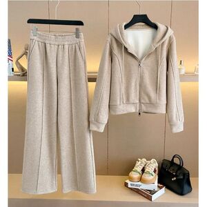 加绒休闲运动套装女秋冬装2025新款宽松显瘦连帽卫衣阔腿裤两件套