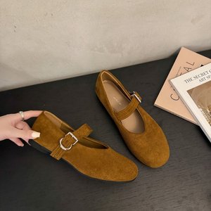 软皮版~复古圆头晚晚风一字扣带玛丽珍鞋百搭通勤休闲芭蕾单鞋女