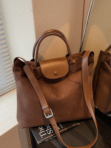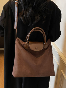 跨境外贸大容量麂皮绒手提包包女2025新款复古托特包斜挎通勤包潮