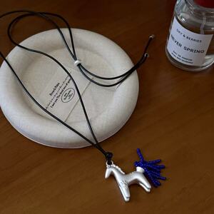 可爱小马串珠流苏吊坠长款皮绳项链女小众设计高级感卫衣毛衣链