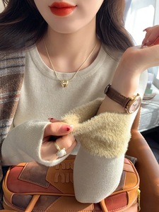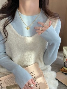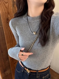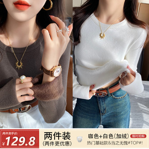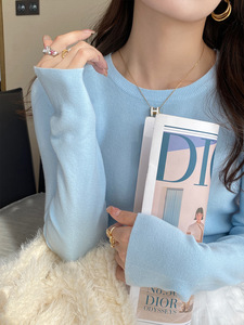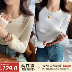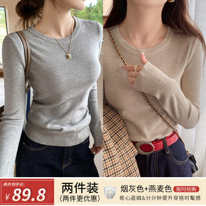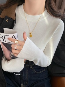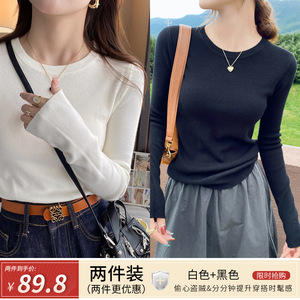白色圆领小香风针织打底衫女内搭2025开春季新款修身毛衣长袖上衣