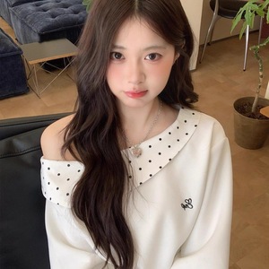 一字肩斜肩波点卫衣长袖T恤上衣女早秋季新款高腰显瘦半身裙套装