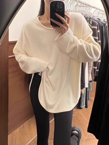 2025秋冬新款白色打底衫女宽松内搭长袖恤搭配鲨鱼裤上衣设计感