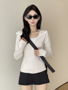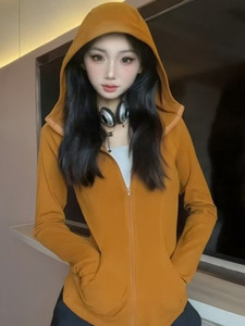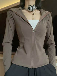 连帽修身打底衫卫衣春秋新款女装运动短开衫正肩收腰修身卫衣外套