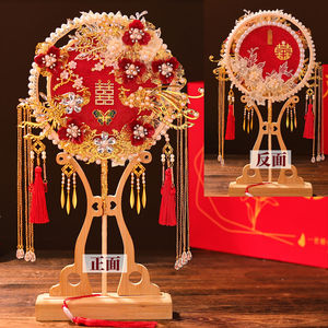 团扇新娘结婚喜扇子diy材料包双色双面婚礼秀禾手工重工婚扇成品