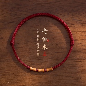 天然老桃木手串红绳手链男女本命年转运婴儿童防惊吓上岸竹节手绳