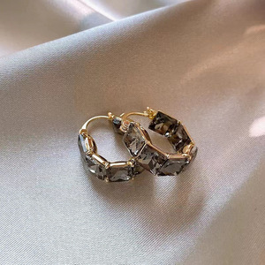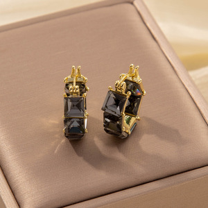 2025年新款法式复古方块黑晶耳环气质耳扣耳饰女高级时尚耳环批发