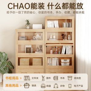 实木书柜置物柜靠墙一体储物柜客厅展示柜家用防尘书架落地收纳柜
