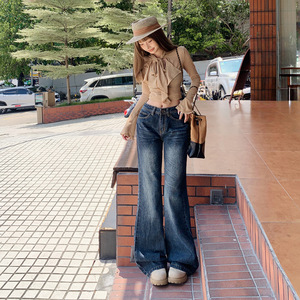 美式复古微喇牛仔裤女2025新款显瘦垂感小个子宽松不贴腿喇叭裤秋
