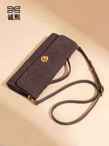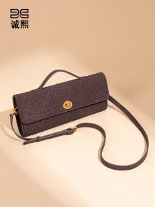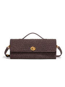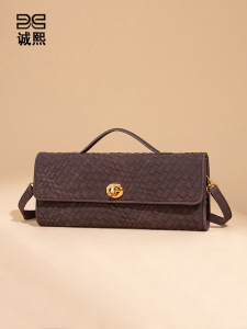 秋冬新款编织女包麂皮绒手提包高级感晚宴包中古法棍包单肩斜跨包