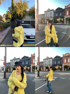 板栗可可'里斯本早秋'慵懒风毛衣开衫外套女连帽早秋麻花针织上衣