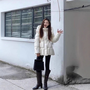 平湖中长连帽韩版宽松羽绒服女新款爆款炸街冬季加厚50白鸭绒外套