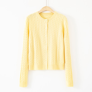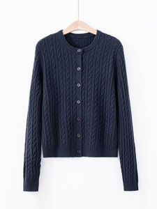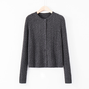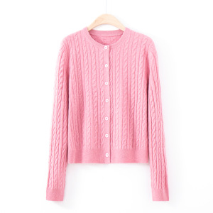 博伟纯色羊毛开衫外搭女圆领羊绒衫毛衣女针织打底衫外套上衣厚款