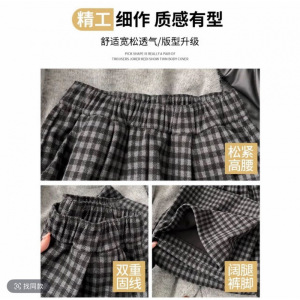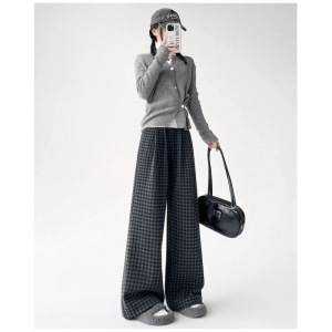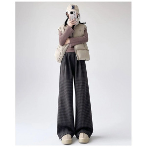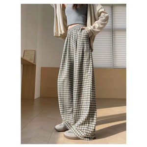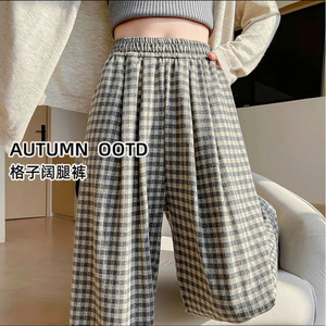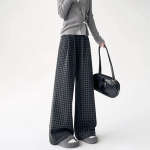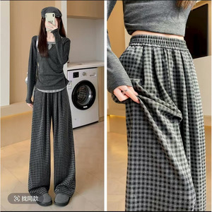 黑灰色毛呢格子裤女秋冬2025新款直筒慵懒松弛休闲显瘦垂感阔腿裤