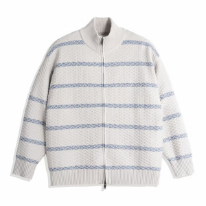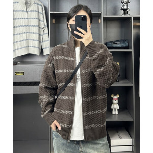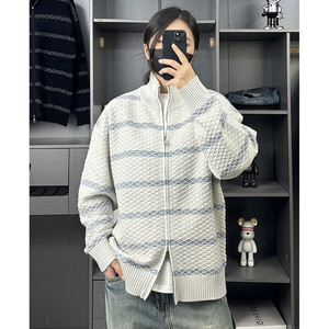 撞色条纹开衫针织衫毛衣男肌理感立领秋冬外套韩系潮外贸跨境批发