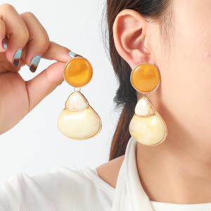 ZA欧美夸张大牌几何树脂吊坠耳环女士时尚秋款可爱风耳饰跨境货源