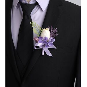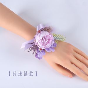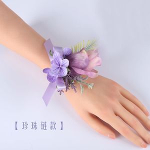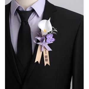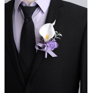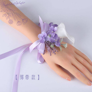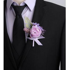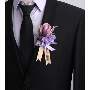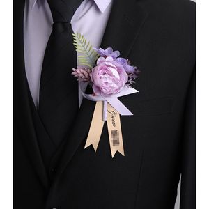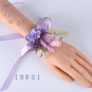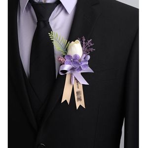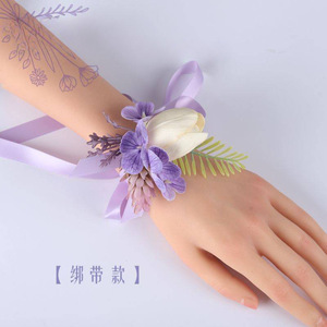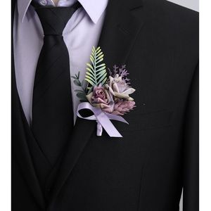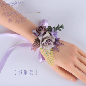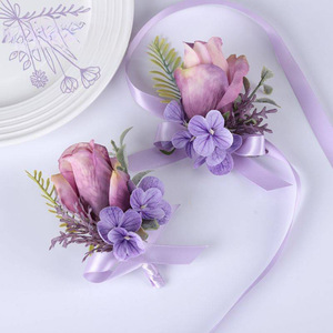 新款森系紫色仿真花胸花结婚新郎襟花婚礼新娘手腕花轻奢创意胸针