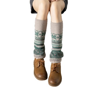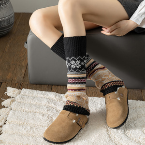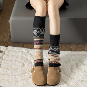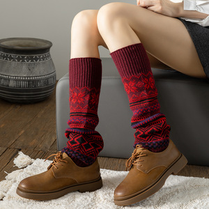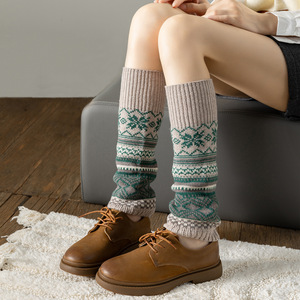 羊绒针织袜套秋冬保暖堆堆袜复古圣诞雪花撞色腿套中筒小腿袜靴套