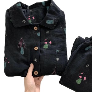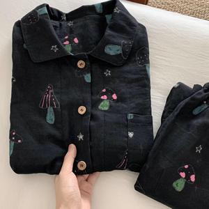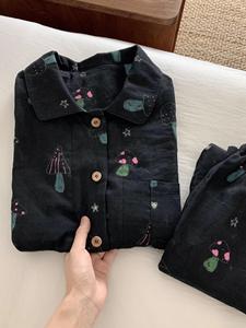 日系慵懒风蘑菇印花睡衣女2025新款春秋季大码舒适宽松家居服套装