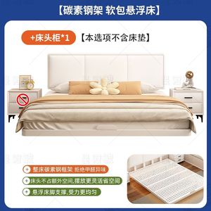 【白色】洞洞床板-软包悬浮床-床头可调节