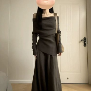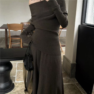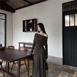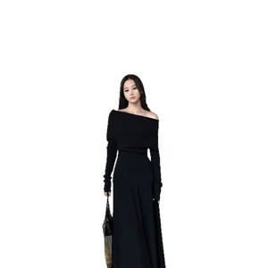 一字黑色浪漫连衣裙温柔2025春秋新款修身显瘦法式气质长裙