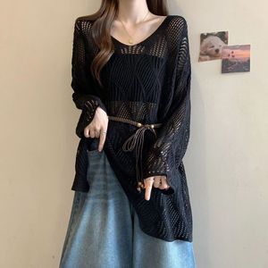大码设计感法式腰带针织衫女2025胖MM春夏不规则时尚显瘦镂空罩衫