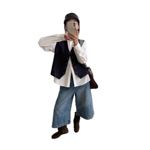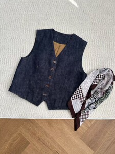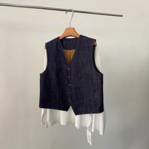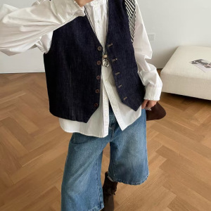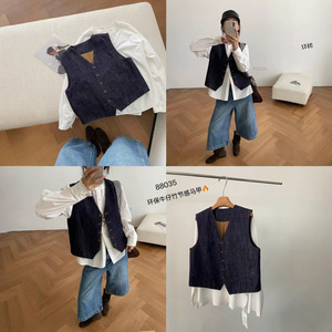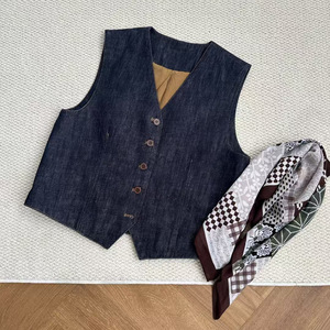 琪镌绘制日系开衫背心坎肩秋季款圆领单排扣上衣宽松马甲女25123
