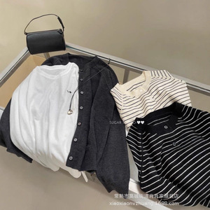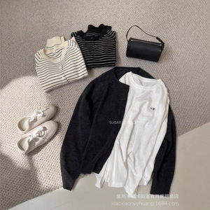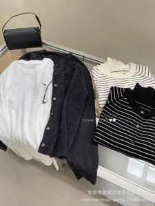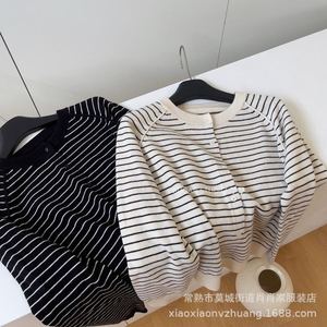 2025秋季新款韩系插肩袖开衫甜美减龄休闲简约百搭条纹长袖针织衫