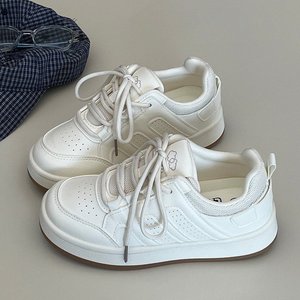 学院风厚底小白鞋女2025秋季新款系带学生运动鞋港风增高休闲板鞋