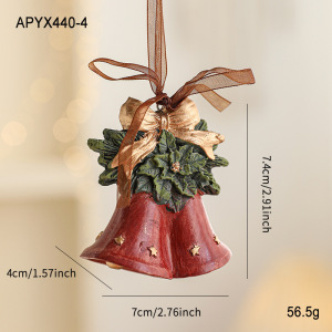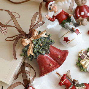 新款树脂彩绘挂件圣诞树装饰彩色复古立体铃铛美式卡通挂饰现货