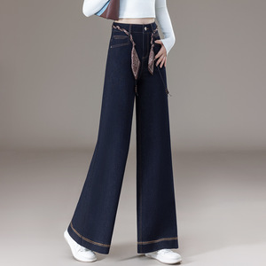 时尚直筒牛仔裤女25秋季新款高腰显高显瘦窄版宽松遮跨垂感阔腿裤