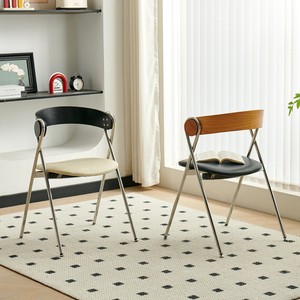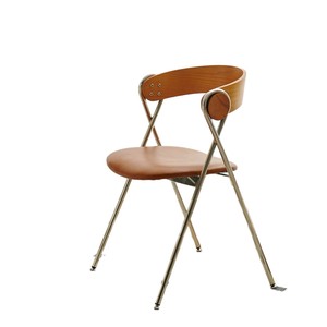 中古实木餐椅不锈钢家用靠背椅复古休闲咖啡厅网红餐厅设计师椅子