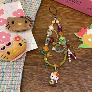 采橘子!橘子味夏日小清新森系串珠手链彩色多巴胺kt猫手机链挂件