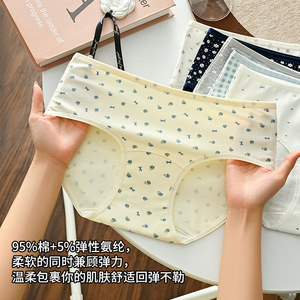 法式田园风碎花内裤女生A类棉10A抑菌加长棉裆女士三角裤纯棉少女