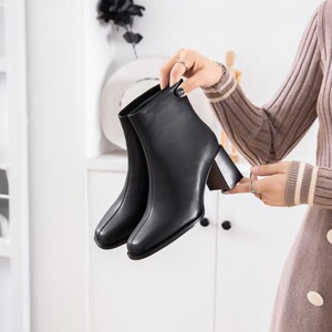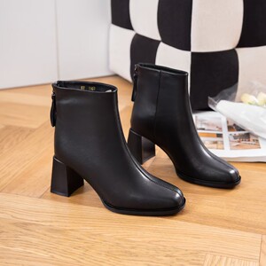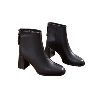 真皮粗跟短靴女2025秋冬新款气质方头高跟马丁靴韩版中跟加绒皮靴