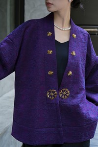 秋冬老钱风新中式超重工造型钉珠桑蚕丝锦油绸香云纱高端阔版外套